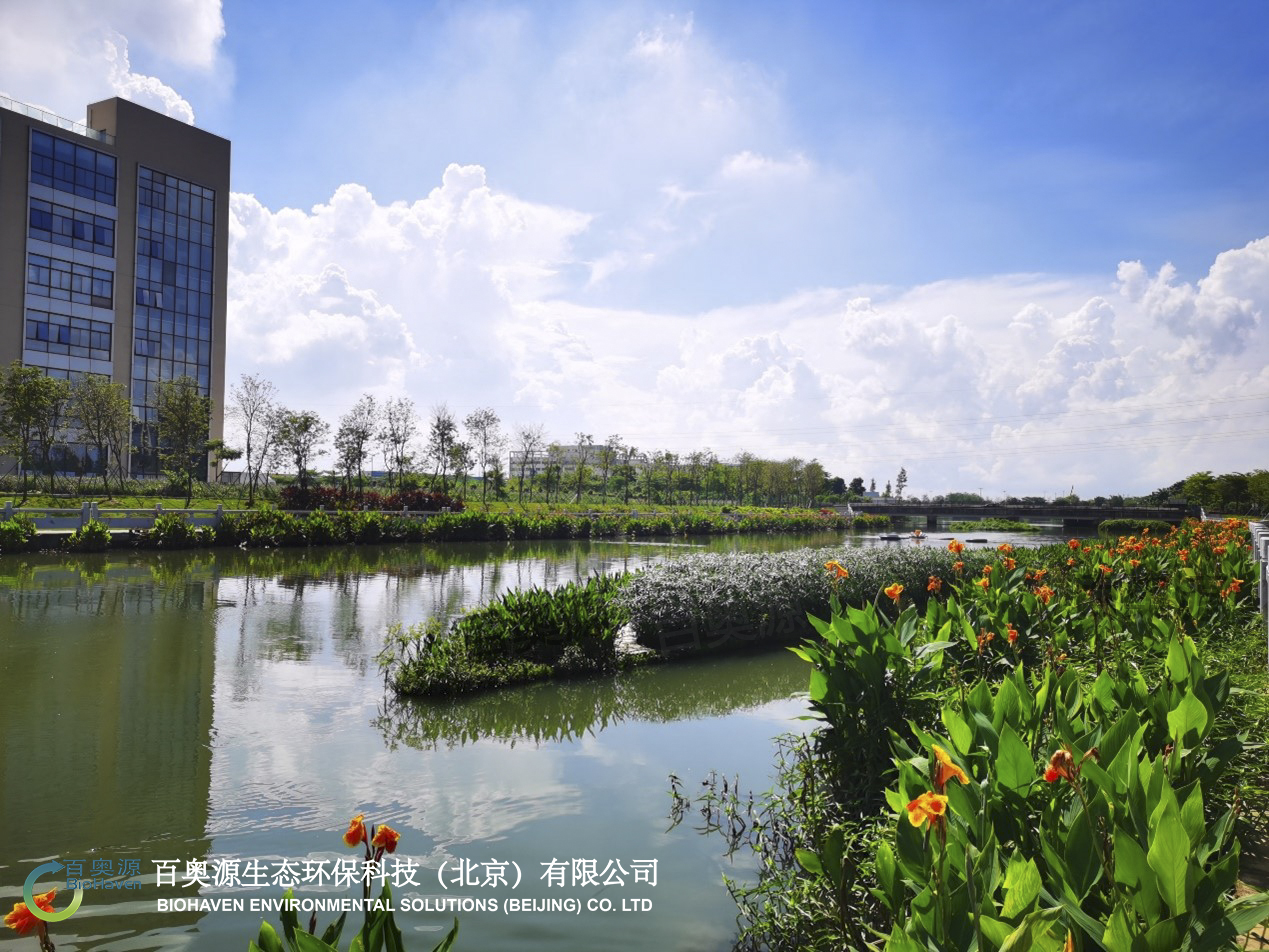 在城市黑臭河道治理中,將浮動濕地與循環(huán)增氧等水生態(tài)修復(fù)技術(shù)相結(jié)合,增強(qiáng)水體溶解氧,輔助提升水中污染物降解,強(qiáng)化水質(zhì)凈化,促進(jìn)水生態(tài)系統(tǒng)修復(fù),營造城市水上景觀。