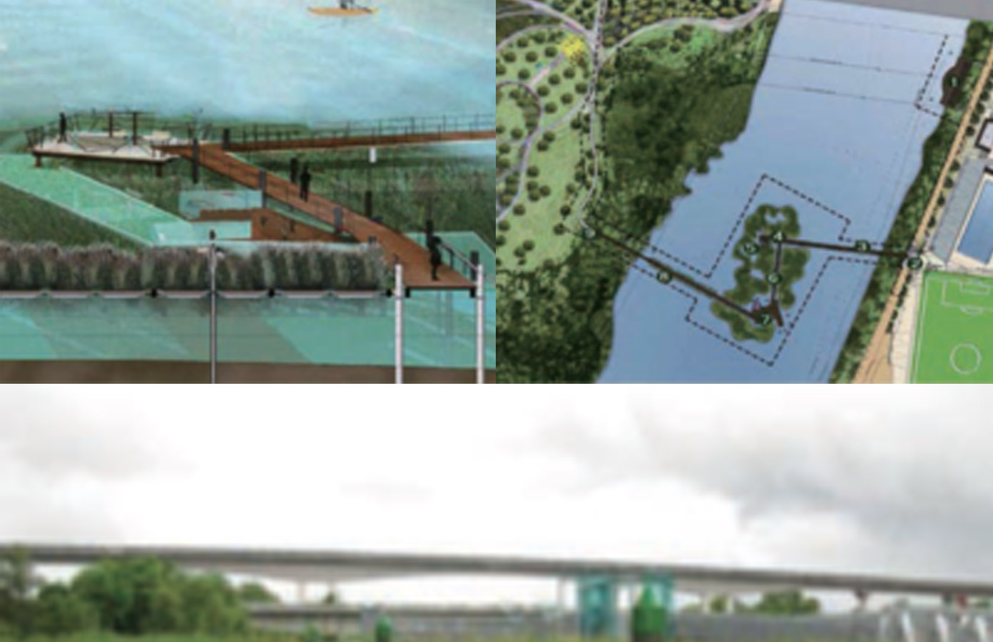 這是一個完全浮在水面的島嶼,大約有半個標(biāo)準(zhǔn)足球場大小,一側(cè)堤岸通過固定的人行橋聯(lián)系,另一側(cè)提案通過浮動的木板走道連接。固定高度的人行橋保證有足夠的凈高開展水上活動,而緊貼水面的浮動木板走道則允許人們真正近距離感受水體。整個項目還創(chuàng)造了一個令人興奮的結(jié)果,為公眾提供了一個全新的親水休閑空間和新的水上休閑活動,并大大加強了水庫兩側(cè)居住社區(qū)的聯(lián)系。
