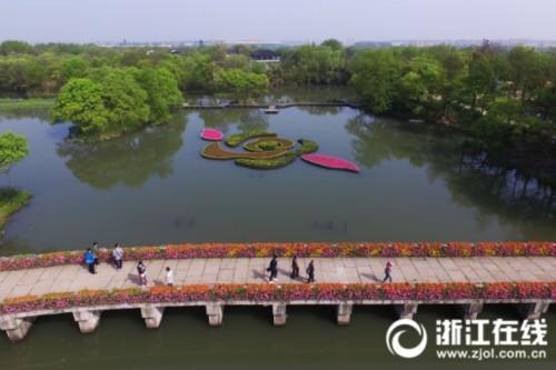 能想像水上的花島是什么樣子的嗎?進(jìn)入綠地西口,就能看到這樣一座應(yīng)用浮動(dòng)濕地技術(shù)打造的水上花島。多彩的花卉組成玫瑰型的小島,與周圍的花橋、花溪相映成趣,將西溪最美的風(fēng)景凝結(jié)在此,讓人仿佛置身于童話世界。