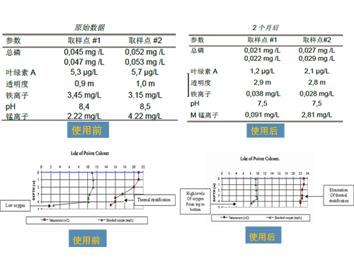太陽能水循環(huán)復(fù)氧設(shè)備使水體在水平方向、垂直方向造成循環(huán)流,增加了水體的流動(dòng)性,將藻類由水面循環(huán)到水底,打破了藻類在水體表層的強(qiáng)光照、高溫度、低流速的優(yōu)勢生長繁殖環(huán)境,有效控制藻類生長,減少水體異味產(chǎn)生。湖泊夏季表層水溫高,湖底與表層溫差較大,在湖面水下4 米左右會(huì)形成溫度變化較大的躍溫層。一方面湖泊表層水溫較高,為藻類生長提供了適宜的溫度與光照環(huán)境,在營養(yǎng)物質(zhì)豐富、溫度適宜的表層水體中,藻類會(huì)大量繁殖,最終暴發(fā)形成水華,另一方面水生生物受到水溫分層的影響,生息空間受到較大限制。太陽能水循環(huán)復(fù)氧設(shè)備能夠有效作用到水面4 米以下的空間,促使均溫層、躍溫層水體有效流動(dòng)與混合,不但能在縱向形成水體交換消除水溫分層的不利影響,也能使?fàn)I養(yǎng)鹽、溶解氧在作用范圍內(nèi)有效混合達(dá)到營養(yǎng)鹽濃度降低,溶解氧升高的效果。