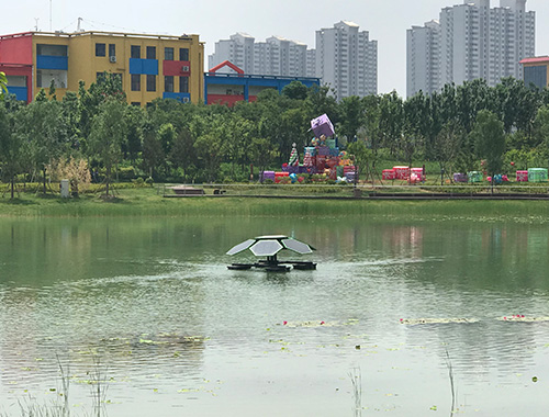 黑臭水體治理在應(yīng)用太陽能水循環(huán)復(fù)氧設(shè)備通過強(qiáng)化大氣復(fù)氧過程,對水體進(jìn)行復(fù)氧曝氣,為有機(jī)物好氧分解提供適宜溶解氧環(huán)境條件,同時(shí)可集成其他生態(tài)技術(shù),如外源添加凈水微生物、微生物填料技術(shù),增加水體中微生物總量,發(fā)揮多技術(shù)的協(xié)同作用。