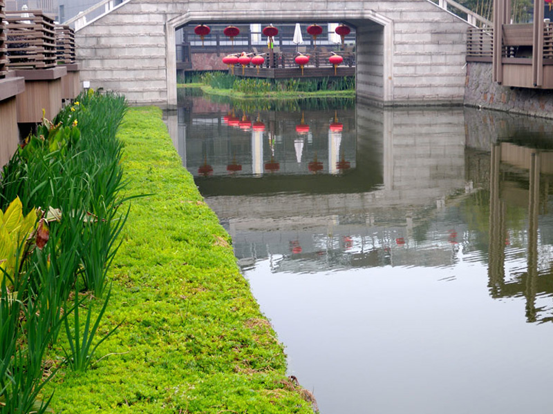 百奧源®浮動(dòng)濕地的穩(wěn)定工程結(jié)構(gòu)使水上生態(tài)構(gòu)筑物得以成為現(xiàn)實(shí)。結(jié)合印制板材、輕質(zhì)建材構(gòu)建的百奧源®生態(tài)廊道能夠?qū)崿F(xiàn)行人自然生態(tài)的水上景觀,拓展人行空間。柔性載體在寒冷冬季不會(huì)因?yàn)楸鶅鰯D壓出現(xiàn)形變,保證項(xiàng)目穩(wěn)固。