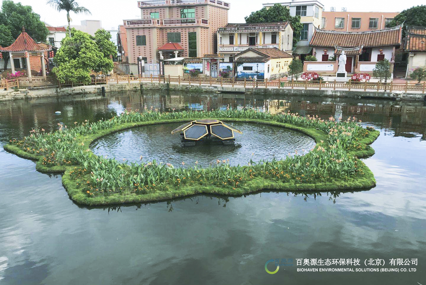 公司引進(jìn)的浮動(dòng)濕地、太陽(yáng)能水循環(huán)復(fù)氧控藻設(shè)備等技術(shù)在流域水環(huán)境改善項(xiàng)目中得到廣泛應(yīng)用。