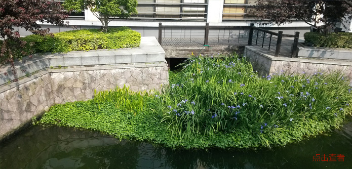 針對(duì)雨水排口,應(yīng)用浮動(dòng)濕地構(gòu)建排口緩沖帶,經(jīng)過合理設(shè)計(jì),在滿足雨水排水的水利安全的同時(shí),通過微生物、過濾等作用有效削減排水中的污染物,攔截懸浮物。